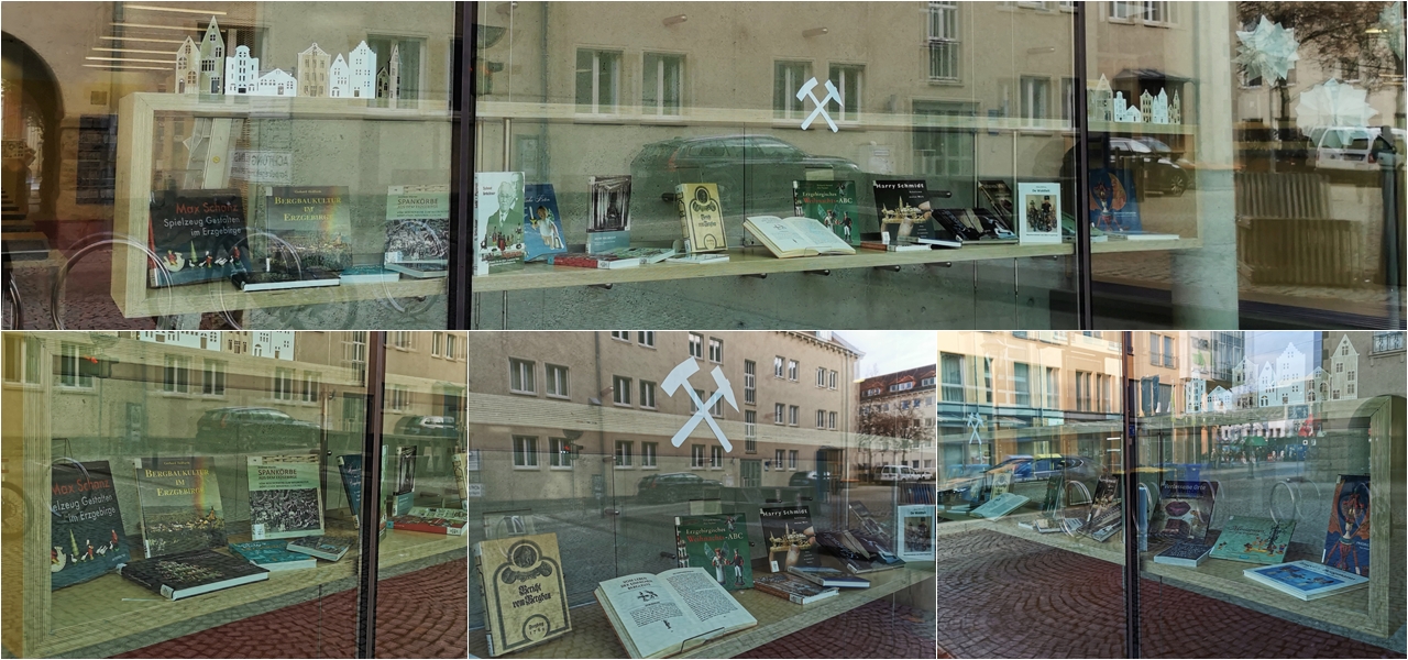 Passend zur gestrigen Eröffnung des Zwickauer Weihnachtsmarktes ist in der Vitrine der Hauptbibliothek das Thema „Handwerkskunst Erzgebirge“ eingezogen, welche durch zahlreiche anschauliche Medien aus der Zweigbibliothek Schneeberg gefüllt und zeitgleich auch gestaltet wurde. Es befinden sich nicht nur Bücher über erzgebirgische Schnitzkunst, Spielzeuggestaltung und Weihnachtspyramidenherstellung, sondern auch über den Steinkohleabbau, Reiseführer und Sagen&Bilder des Erzgebirges in der Ausstellung.